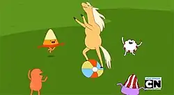 2. ^ Muto, Adam (supervising director); Nick Jennings (art director); Pendleton Ward & Somvilay Xayaphone (storyboard artists) (May 6, 2013). "James Baxter the Horse". Adventure Time. Season 5. Episode 19. Cartoon Network.