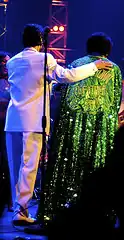 It was around this time as the musician's popularity increased that he acquired the nickname "Soul Brother No. 1", after failing to win the title "King of Soul" from Solomon Burke during a Chicago gig two years prior.[56] Brown's recordings during this period influenced musicians across the industry, most notably groups such as Sly and the Family Stone, Funkadelic, Charles Wright & the Watts 103rd Street Rhythm Band, Booker T. & the M.G.s as well as vocalists such as Edwin Starr, David Ruffin and Dennis Edwards from the Temptations, and Michael Jackson, who, throughout his career, cited Brown as his ultimate idol.[57]
