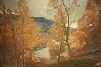 Cadenhead returned to Aberdeen in 1884, moving to Edinburgh in 1891. In 1893, he was elected a member of the Royal Scottish Society of Painters in Watercolour, and in 1902 was made an Associate of the Royal Scottish Academy, and later a full member.[4] He became Chairman of the Society of Scottish Artists, and was one of the original committee of the Scottish Modern Arts Association.[3] He was a founder of the Edinburgh Society of Eight in 1912.[5] He exhibited regularly at the Royal Scottish Academy and Royal Glasgow Institute of the Fine Arts, and was elected a Scottish Royal Academician in 1921.[1]