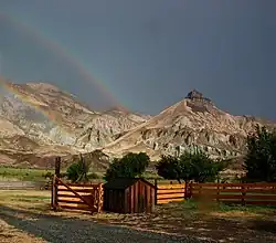 The Cant Ranch national historic district is located along the John Day River in northeastern Oregon. The elevation of the ranch is 2,244 feet (684 m) above sea level. Sheep Rock is a prominent geographic feature located approximately 1 mile (1.6 km) southeast of the ranch complex and can easily be seen from the ranch. There is a 0.5-mile (0.80 km) hiking trail, known as the Sheep Rock Overlook Trail, that begins at the Cant Ranch and leads to an overlook with a view of the valley.[16]