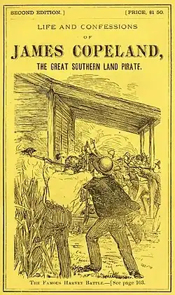 1. ^ a b c d e f g Pitts, J.R.S. 1874. Life and Bloody Career of the Executed Criminal, James Copeland. Pilot Publishing Co., Jackson, MS. 246 p. (Available at Internet Archive [1]) Republished as: Pitts, J.R.S. 1909. Life and Confession of the Noted Outlaw James Copeland. (Available at Google Books [2]) Republished as: Pitts, J.R.S. and J.D.W. Guice. 1992. Life and Confession of the Noted Outlaw James Copeland. Jackson, MS: University Press of Mississippi. 237 p.