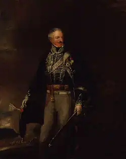 He joined the Army in 1797 and served 5 years in India with the 25th Regiment of Foot. He saw action at the Battle of Mallavelly, Siege of Seringapatam and at Doondia. At the storming of the fort of Turnioul, he volunteered and led the assault with fifty dismounted dragoons. Over the course of 3 years, he took part in the capture of more than 15 fortresses. By 1806, he was serving with the 21st Fusiliers during the Sicilian campaign, which concluded the War of the Third Coalition with the Battle of Maida. For 1807–1811, he returned to India with the 17th Light Dragoons. He returned to Europe in 1811 and joined the 18th Hussars, within the army under the Duke of Wellington. He saw action at the Battle of Toulouse and the Battle of Waterloo. He was promoted to Lieutenant-Colonel, with effect from the date of Waterloo. He married shortly afterwards and spent his time between France and Hillingdon, where he leased nearby Hayes Park House from 1829 to 1843. The extended Grant family appear several times in the autobiography of their neighbour, Anthony Trollope.[1] Grant was promoted to Colonel in 1837 and to Major-General in 1846. He was appointed Governor of Scarborough Castle and was created Companion of The Most Honourable Order of the Bath (C.B.)