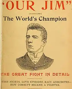 Corbett introduced a scientific approach to boxing, in which technique and his innovative methods triumphed over brute force. He pioneered the daily boxing training routine and regimen, which was adopted by other boxers elsewhere and has survived to modern days almost intact. A "big-money fighter," Corbett was one of the first athletes whose showmanship in and out of the ring was just as good as his boxing abilities. He also arguably became the first modern sports sex symbol after the film of his championship prizefight against Robert Fitzsimmons was aired worldwide, popularizing boxing immensely among the female audience.[1] He did so in an era in which prizefighting was illegal in 21 states and was still considered among the most infamous crimes against morality.[2]