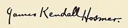 James Kendall Hosmer (January 29, 1834 – May 11, 1927)[1][2][3][4] was an American (Union) soldier during the American Civil War, a pastor, library director, historian, author and a professor of history and literature.[a] Members of the Hosmer family fought in the French and Indian War, American Revolution and the Civil War. As a pastor of the First Church in Deerfield, Massachusetts he left the ministry, feeling duty bound to join the U.S. Army to serve in the Civil War, insisting to serve at the front, where he participated in several major campaigns. As an author and historian he later wrote and published several works about and involving the Civil War and how he viewed the cause of both the North and South. He also authored a number of other works relating to early American history, along with several novels and a fair number of poems. Hosmer also reviewed and published accounts about the Lewis and Clark Expedition at a time when full accounts of the expedition were very few in number and out of print. During his career he corresponded with many prominent writers and historians involving his works. In his latter life he held several prominent positions in various literary associations, including his position as president of the American Library Association.