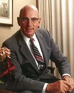 McLamore was born in 1926, in New York City. After the stock market crash of 1929, Jim's father moved the family to the country to live with Jim's grandmother. Jim lost his mother soon after and his family struggled during that time. McLamore went to Northfield Mount Hermon School before attending Cornell University at the School of Hotel Management.[1] He arrived at Cornell with only $11 in his pocket, but he graduated in 1947.[2] During his time at Cornell, he served in the United States Navy and was a member of the New York Alpha chapter of the Phi Delta Theta fraternity.[3] Upon graduating from Cornell, Jim married Nancy Nichol of Miami, Florida.