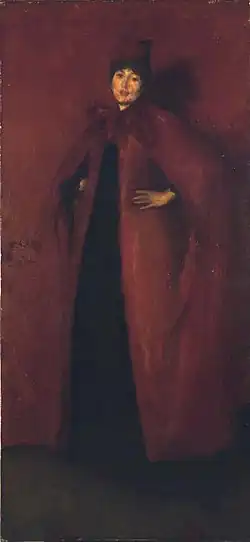 Other important portraits by Whistler include those of Thomas Carlyle (historian, 1873), Maud Franklin (his mistress, 1876), Cicely Alexander (daughter of a London banker, 1873), Lady Meux (socialite, 1882), and Théodore Duret (critic, 1884). In the 1870s, Whistler painted full-length portraits of his benefactor Frederick Leyland and his wife Frances. Leyland subsequently commissioned the artist to decorate his dining room (see Peacock Room below).[65]