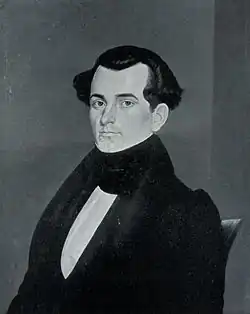 Among his many acquaintances, Rollins had a lifelong friendship with artist and politician George Caleb Bingham. Bingham painted numerous portraits of Rollins family members, including several of Rollins himself. Rollins gave Bingham a boost early in his career by getting several people in Columbia to have him paint their portraits. He later helped Bingham get a commission to do portraits of Thomas Jefferson and George Washington for the Missouri State Capitol,[26] and he helped finance printings of Bingham's General Order No. 11. Late in Bingham's life, Rollins helped him get a position as the University of Missouri's first art professor.[27]