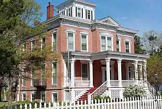The home is built in the Italianate style, 28 feet by 44 feet on the lower floor, 36 feet by 38 feet on the upper. A front gabled roof, cupola, and a basement that extents about five feet above ground combine to give the house additional stature. The floor plan is similar from basement to second floor, with the same 4 rooms (2 rooms on each side separated by a central hallway) on each floor. The privy is brick with four seats and a ventilation system.[2]