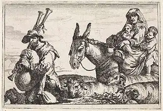Jan Baptist de Wael travelled to Genoa in 1642 where he became a pupil of his uncle Cornelis. When his uncle moved to Rome around the year 1656 to avoid an outbreak of the plague in Genoa, Jan Baptist likely followed him as he was later recorded as a resident of Rome.[1][3] Here he reportedly moved in the circle of the Bentvueghels, an association of mainly Dutch and Flemish artists working in Rome.[4]