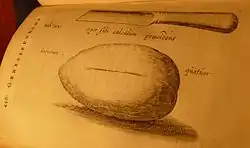 Illustration of the knife and bladder stone (publication 1740)