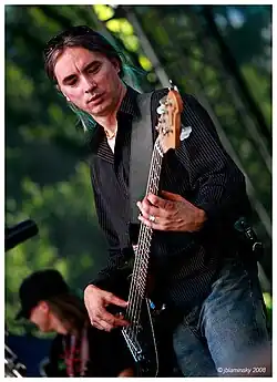 Janusz Frychel (born January 7, 1967) is a Polish musician, bassist, composer, and lyricist.[1][2] His music combines styles such as blues, rock, pop, and folk. He is one of the founders of the band Gang Olsena.[3][4][5][6] Since 1988, he has been performing on major stages and festivals in Poland and abroad.[7][8][9]