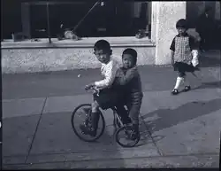 When the Pacific war erupted, more than 8,500, or ⅓ of Japanese Canadians lived in the Greater Vancouver Area.[1] More than half of these lived in the Powell Street district.[1] Following the War Measures Act, all people of Japanese descent were declared “enemy aliens” of Canada. In February 1942, the Canadian government ordered “all persons of Japanese racial origin” to leave the 100-mile area along the coast.[2] The Custodian of Enemy Property seized all property deemed to be dangerous, including boats, cars, radios, cameras, and was authorized to hold all land and property in trust. During the construction of the internment camps, the Pacific National Exhibition was designated a holding and distribution centre for Japanese Canadians. 22,000 Japanese Canadians—comprising over 90% of the total Japanese Canadian population—from British Columbia were forcibly relocated and interned in the name of national security. The majority were Canadian citizens by birth.[8] In March 1949, four years after the war was over, the last of the wartime restrictions and the War Measures Act were lifted, and Japanese Canadians were allowed to travel freely and return to the West Coast.
