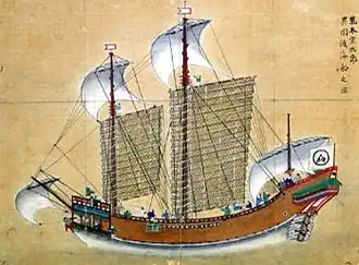 A fleet of more than 3,000 people and 13 ships led by Murayama Akiyasu set out from Nagasaki on May 4, 1616, but encountered a typhoon in Ryukyu and was disbanded. The three ships led by Murayama Akiyasu drifted to Jiaozhi (now Vietnam) and returned to Nagasaki in July of the following year.[8]