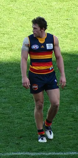 2009 was a breakthrough year for Porplyzia, he kicked 57 goals, 20 behinds making him Adelaide's leading goalscorer. He was favourite behind Mark LeCras to receive his first All Australian selection as the small forward pocket, but was controversially beaten by Leon Davis.[1] Porplyzia is recognised as one of the most accurate set shots in the AFL, kicking 16 goals without a miss during 2009.[2] He played his 50th match for the Crows in round 6 against Port Adelaide in Showdown XXIV, and booted three goals despite the Crows' loss. In the Crows round 21 match against the West Coast Eagles, Porplyzia booted his 100th goal in AFL footy, and also achieved a career high 6 goals. On 2 October Porplyzia was officially recognised for being Adelaide's leading goalscorer at the Best and Fairest awards. He also won the coaches award and finished runner up to Bernie Vince in the Best and Fairest by 2 votes.[3]