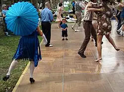 The Jazz Age Lawn Party is a 1920s themed party in New York City that was started by Michael Arenella & His Dreamland Orchestra in 2005. People come dressed in 1920's clothing to listen and dance to period music performed by Mr. Arenella and his Orchestra.[1] There are live dance performances and lessons, as well as activities such as the Tintype photograph, and booths selling clothing from the period. The party grew rapidly after the original party in 2005.