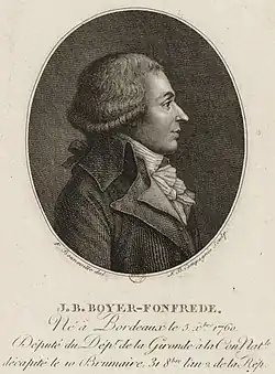 Jean-Baptiste Boyer-Fonfrède (French pronunciation: [ʒɑ̃ batist bwaje fɔ̃fʁɛd]; 1760 – 31 October 1793) was a French Girondin politician.