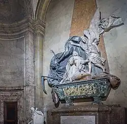 Languet de Gergy initially wished to establish the exact astrological time in order to ring the bells at the most appropriate time of day. For this, he commissioned the English clockmaker Henry Sully to build the gnomon.[1] A staunch moralist, Languet is famous for denying the sacraments to Marie Louise Élisabeth d'Orléans, Duchess of Berry, eldest daughter of Philippe II, Duke of Orléans.[3] At the end of March 1719, the young widow became critically "ill", shut up in a little chamber of her Luxembourg Palace. In fact, she was deep in the pangs of childbirth and as she seemed close to dying, Languet was called upon to administer her the sacraments. He refused unless the royal princess would part with her lover, the count of Riom, captain of her guard. The Regent tried to intervene on behalf of his suffering daughter but the inflexible curé did not yield. At last, the Duchess was delivered, ending the crisis but not the scandal provoked by Languet's refusal to turn a blind eye to her clandestine childbearing.[4][5]