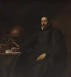 2. ^ The compass in the painting is the model of compass developed earlier by another mathematician established in Antwerpen, Michiel Coignet. Several of these compasses are on display in the "Ciencias Nauticas" Room of the Madrid Naval Museum.