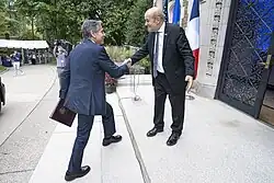 Jean-Yves Le Drian (French pronunciation: [ʒɑ̃ iv lə dʁijɑ̃]; born 30 June 1947) is a French politician who served as Minister of Europe and Foreign Affairs in the governments of Prime Ministers Édouard Philippe and Jean Castex (2017–2022)[1] and as Minister of Defence under President François Hollande (2012–2017).[2][3] A former member of the Socialist Party, he had been an Independent from 2018 before founding Territories of Progress in 2020.
