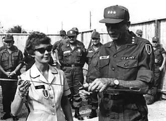 In December 1965 he was appointed as deputy commanding general United States Army Vietnam (USARV).[1] He arrived in South Vietnam in January 1966.[5] During this time he conducted a review of the relationship between USARV and Military Assistance Command, Vietnam.[6] In April 1966 he requested the deployment of a Women's Army Corps (WAC) detachment to support USARV and he finally received approval from the Joint Chiefs of Staff on 25 July 1966 with the first WACs arriving in late October 1966.[7][8]