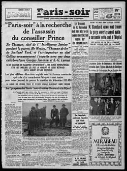 After the First World War, Jean Prouvost focused his interests on the newspaper business. In 1924 he bought Paris-Midi, a Paris daily[3] that then had a circulation of 4,000. Six years later, thanks to a bold commercial and editorial policy, circulation had reached 100,000. In 1930 he bought Paris-Soir,[4] where he introduced methods proven in the United States: extensive photo spreads, high quality paper, and especially the improvement of content. He recruited top journalists (Pierre Lazareff, Paul Gordeaux and Hervé Mille) and commissioned occasional contributions from prominent literary names: Colette covered various subjects; Jean Cocteau toured the world for the newspaper; Georges Simenon reported on sensational criminal cases. Prouvost hired as war correspondents Blaise Cendrars, Joseph Kessel, Antoine de Saint-Exupéry, and Paul Gordeaux. Paris-Soir published story serializations from Maurice Dekobra,[5] Pierre Mac Orlan and Pierre Daninos.[6] From 70,000 copies in 1930, the circulation of Paris-Soir reached 1.7 million in 1936. Jean Prouvost soon had an empire that also included Marie Claire, the women's magazine founded in March 1937, and the sports paper Match, bought the following year from Louis Louis-Dreyfus Group.