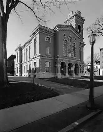 Jefferson County Courthouse Complex is a courthouse complex and national historic district located at Watertown in Jefferson County, New York. The district includes three contributing buildings; the courthouse building (1862), Clerk's Office (1883–1884) and Surrogate's Office (1905). The courthouse building is a two-story, red brick structure with limestone trim. It features a three-story tower on the northwest corner. It was designed by architect Horatio Nelson White.[2]