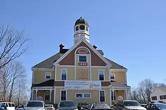 The Jefferson School is a historic school at 200 Middle Street in Weymouth, Massachusetts. The Queen Anne style school was designed by Shepard S. Woodcock and was built in 1889. The four-room schoolhouse is a variant of the Washington School, built in 1887. In contrast to the latter school, this one has more symmetrical massing, but is decorated with scalloped shingles and a porch with elaborate woodwork. It is topped by an octagonal clock tower with cupola.[2]