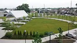 On the Jeffersonville side of the bridge the city constructed Big Four Station, a plaza and park. The park features green space, fountains, a farmers market on Saturdays, a restroom, a bike-sharing station, a pavilion, a playground, and easy access to downtown shops and restaurants.[33] Big Four Station is also the home of the annual Abbey Road on the River, the largest Beatles-inspired music festival in the world, as well as other annual celebrations.[34]