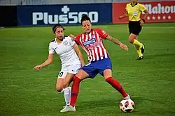 Hermoso with the ball in a match against Madrid CFF in 2018.