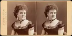 Thomas died in 1892.[8] On October 1, 1893, at Milwaukee, Wisconsin, she married Arling Schaefer,[4] a banjo player in her company.[8] Kimball died in her private car at Saint Paul Union Depot, Saint Paul, Minnesota, March 23, 1896, of pneumonia.[2] Services were held at the Forest Hills Cemetery, Boston.[9] It was then said that she left Corinne a large fortune, the proceeds of profits from the Kimball Opera Company, which for years she had managed with Corinne as the star.[7]