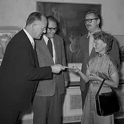 Jenny Johanna Dalenoord (17 June 1918 – 25 October 2013) was a Dutch illustrator, graphic designer, watercolorist and cartoon artist. Dalenoord illustrated more than 180 children's books throughout her career.[1] Some of her most notable works include the illustrations for works by Siny van Iterson,[2] for "Wiplala" by Annie M. G. Schmidt in 1957, "Padu is gek" by Miep Diekmann in 1957, and "Gideons reizen" by Anna Rutgers van der Loeff in 1960.[1][3] Dalenoord and Schmidt shared the prize for "Best Children's Book" in 1957 for their work on "Wiplala".[3] She also illustrated Dutch children's magazines, including Jippo, Okki, and Kris Kras.[3][1] In addition to her work in children's literature, Dalenoord designed a series of children's postage stamps in 1952.[3]