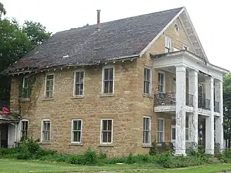The Jeremiah Wood House is a historic residence located in Sabula, Iowa, United States. The house is associated with the settlement of Sabula, and the occupation of steamboat pilot.[2] Dr. Enoch A. Wood and his father James settled here in 1836 and platted the town the same year. It was named Sabula ten years later. Enoch's brother Jeremiah joined them in 1837, and worked in the family retail store. He became a steamboat pilot around 1852, and married his wife in 1860. He built the major part of this house six years later. The 2½-story stone house was built on the banks of the Mississippi River. It features modillions along the rooflines, ocular windows on the gable ends, and a two-story porch on the main facade. The back wing may be as much as 30 years older.[2] The house was listed on the National Register of Historic Places in 1982.[1]