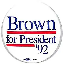 - ^ a b c Schmalz, Jeffrey (March 30, 1992). "THE 1992 CAMPAIGN: Candidate's Record; Brown Firm on What He Believes, But What He Believes Often Shifts". The New York Times. Retrieved September 16, 2024.