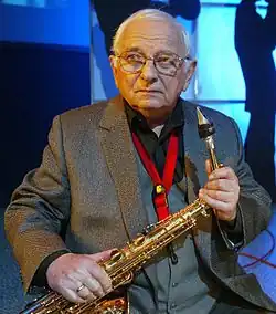 Jerzy "Duduś" Matuszkiewicz (Polish pronunciation: [ˈjɛʐɨ matuʂˈkʲɛvit͡ʂ]; 10 April 1928 – 31 July 2021) was a Polish jazz musician and composer, playing saxophone, clarinet and piano. Between 1950 and 1958, he was leader of the jazz group Melomani. From 1965, he focused on composing music for films. He was a pioneer of the post-World War II jazz movement in Poland, regarded as a "Founding Father" of Polish jazz.[1] He is best known for composing the music for the Polish TV series Janosik.