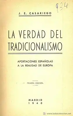 18. ^ Jesús Evaristo Casariego, La Verdad del tradicionalismo: aportaciones españolas a la realidad de Europa, Madrid 1940, p. v
