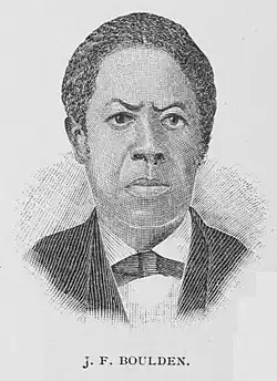 Jesse Freeman Boulden (October 8, 1820 – March 6, 1899) was a Baptist pastor and politician in Chicago and Mississippi. He founded churches including Olivet Baptist Church in Chicago. He served in the Mississippi House of Representatives during the Reconstruction Era. He also helped manage the Senate campaigns of Hiram Rhodes Revels and Blanche Kelso Bruce.[1]