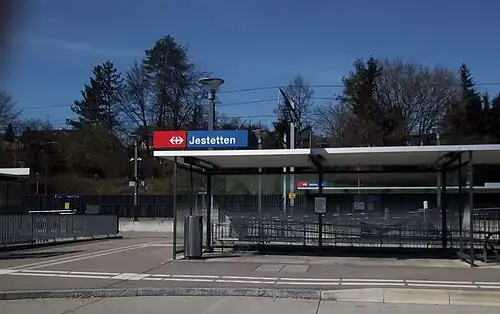Jestetten is a railway station in the German state of Baden-Württemberg, located in the municipality of Jestetten in the district of Waldshut. Despite its location in Germany, it is owned and operated by Swiss Federal Railways.