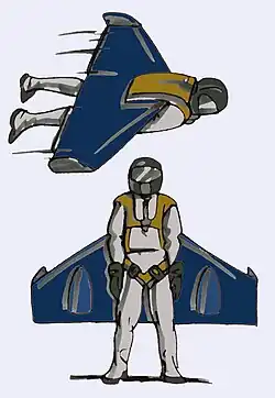 Jet wingsuits use small turbojets, but differ from other aircraft in that the fuselage and flight control surfaces consist of a human.[25][26]