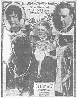 Jewel is a 1915 American silent drama film directed by Phillips Smalley and starring Ella Hall, Rupert Julian and Frank Elliott.[1]
