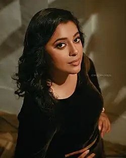 In school she performed in ballet, and in college she started working as master of ceremonies, mostly for corporate events.[3] In 2014, she began her career as a television presenter, co-hosting the reality show D 4 Dance on Mazhavil Manorama, alongside Govind Padmasoorya.[3] Later she forayed into films, debuting with Pathemari.[4][5] She has acted in several movies and hosted many reality TV shows and celebrity award nights across the globe.