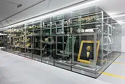 As part of the renovation, the Visible Storage area ("Schaudepot") in the third floor was completely redesigned to house the museum's Judaica collection. Individual objects are highlighted and explained through an installation of "windows" in the glass display cases, each window corresponding to a location, such as the "Leopoldstadt Temple" in Vienna. The central display features objects of Viennese and Austrian prayer houses, synagogues and other Jewish institutions, from the Jewish Museum before 1938, and to a small extent also from private households. The displays on the side cases focus of the period after 1945 : they include objects of the Max Berger Collection of Austro-Hungarian Judaica, the Eli Stern collection that is mainly made up of everyday objects from Eretz Yisrael, and the new acquisitions and donations that trace the history of Vienna's Jewish community from 1945 to now. The Martin Schlaff "Antisemitic objects" collection, also housed on the third floor, is shown facing to the back of each display case, which is mirrored—the idea being that to look at the mirrored objects, the visitor must at the same time come face to face with their own reflection.