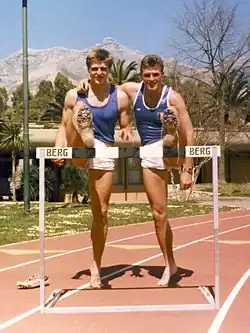 Jiří Hudec (right) with fellow hurdler Aleš Höffer in 1989