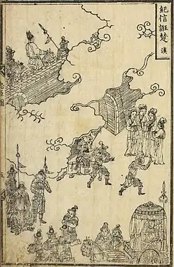 Ji Xin (紀信; died 204 BC), posthumously known as Marquis Zhonglie of Xingyang (滎陽忠烈侯), was a military officer serving under Liu Bang (Emperor Gaozu), the founding emperor of the Han dynasty. He is best known for his role at the Battle of Xingyang in 204 BC between Liu Bang and his rival Xiang Yu, when he disguised himself as Liu Bang and pretended to surrender to Xiang Yu in order to buy time for Liu Bang to escape. After Ji Xin was caught, Xiang Yu, seeing how loyal Ji Xin was towards his lord, offered him a chance to join his forces. However, Ji Xin refused, so Xiang Yu had him burnt to death.
