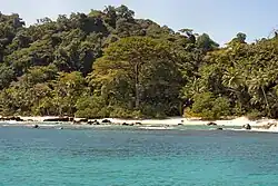 The northwestern coast of Jicarón at 7°17′25.92″N 81°49′2.08″W / 7.2905333°N 81.8172444°W / 7.2905333; -81.8172444 on 4 December 2004.