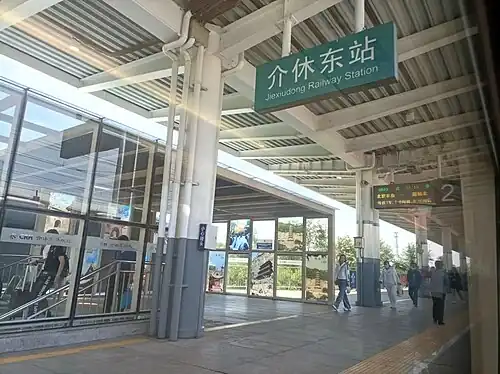 The Jiexiu East railway station (Chinese: 介休东站) is a railway station of Datong–Xi'an Passenger Railway that is located in Jiexiu, Shanxi, China. It started operation on 1 July 2014, along with the Railway.