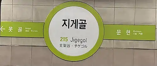 Jigegol Station (Korean: 지게골역) is a station on the Busan Metro Line 2 in Munhyeon-dong, Nam District, Busan, South Korea.