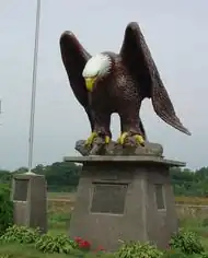 Because of this connection, the reservoir behind the dam is named "Old Abe Lake." Moreover, in a park on the Old Abe State Trail, which runs through the town, a 10½ foot statue of Old Abe has been erected near the dam.[9]