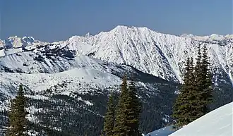 Jim Hill Mountain is a prominent 6,765 ft (2,060 m) mountain summit located in Chelan County of Washington state.[5] Jim Hill Mountain is situated 3.5 mi (5.6 km) east of Stevens Pass, on the boundary of Alpine Lakes Wilderness, on land managed by the Okanogan–Wenatchee National Forest. Jim Hill Mountain is part of the Chiwaukum Mountains, which are a subset of the Cascade Range. Its nearest higher neighbor is Bulls Tooth, 3.8 mi (6.1 km) to the south.[1] Precipitation runoff from the peak drains into tributaries of Nason Creek, which in turn is a tributary of the Wenatchee River. Jim Hill Mountain is set immediately south of the east portal of the Cascade Tunnel, which was built by the Great Northern Railway. This mountain was named by Albert Hale Sylvester to honor James J. Hill (1838–1916), the chief executive officer of the Great Northern Railway.[6][7] Hill became known during his lifetime as "The Empire Builder", a name bestowed to the Empire Builder passenger train that runs from Seattle to Chicago, and traverses below this mountain.
