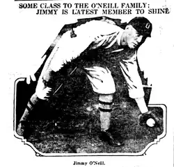 James L. O'Neill played for the Minooka Blues in the Northeast Pennsylvania Temperance League, as well as for multiple other minor league clubs from 1914 through 1930. He played with the Washington Senators in part of two seasons in 1920 and 1923, and posted a .287 batting average with one home run and 43 RBI in 109 games.
