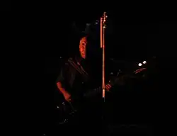 Smith realised that music could become his life from the momentum of do it yourself punk.[11] He co-founded the band that would become Cardiacs, Cardiac Arrest, with Tim in 1977,[12][13] along with Michael Pugh on vocals and Peter Tagg on drums.[14] The Smith brothers were the only constant members in the band's regularly changing lineup.[15] Jim played bass and backing vocals,[12] though he allegedly couldn't play an instrument.[16] Tim—the leader of the band[17]—originally took on guitar and backing vocal duties before a personnel change saw him promoted to frontman.[18] According to Cardiacs' official history, happily unreliable folklore,[19] Tim intended to make Jim "look as foolish as possible on stage" to punish him "for all the unkind things he would do to him as an infant".[9] The idea was to play unpalatable, unpopular music and therefore humiliate Jim, forming the band as revenge.[19] On Cardiac Arrest's first album, the cassette-only release The Obvious Identity (1980),[20][21] Jim was credited as "Patty Pilf".[22] On the second Cardiacs cassette, Toy World (1981), Jim co-wrote the album's lyrics with Tim and Cawthra.[23]